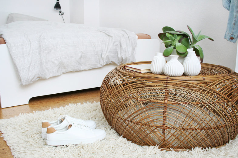 Auch hello-mrs-eve kühlt sich im August mit einer reduzierten, natürlichen Farbpalette zu Hause ab - und konserviert den Sommer mit einem neuen Beistelltisch aus Rattan.