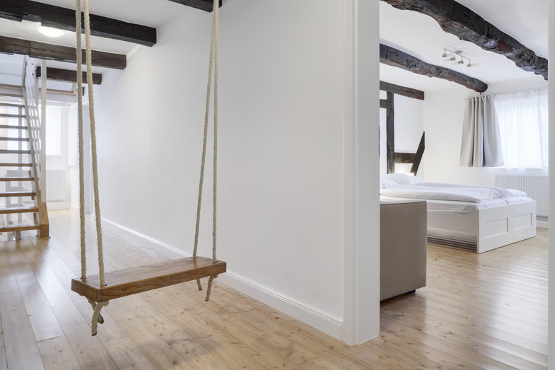 Ein absolter Hingucker und eine tolle Einrichtungsidee zeigt uns bleibe auf diesem Foto: Die Schaukel im Flur sorgt jeden Morgen für gute Laune gleich nach dem Aufstehen!