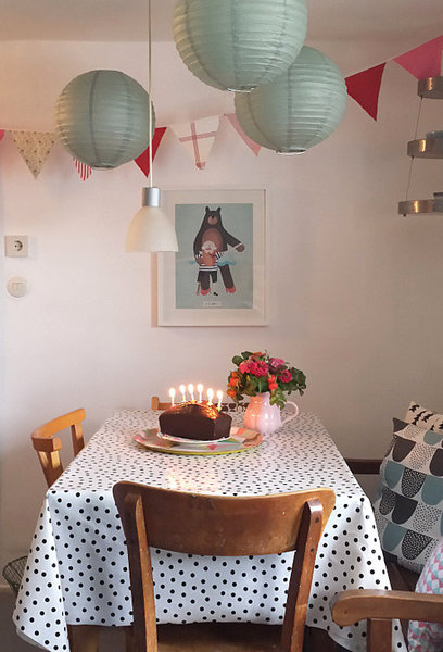 Ideen mit Kupfer auch in der schönen Indianerküche von Makeitboho. Wunderblumen dekoriert mit mintfarbenen Lampions und Wimpelkette für den Kindergeburtstag. Tolle Festtagsdeko gabs auch bei Biene zu bestaunen: Sie zeigt ihre Hochzeitslocation.