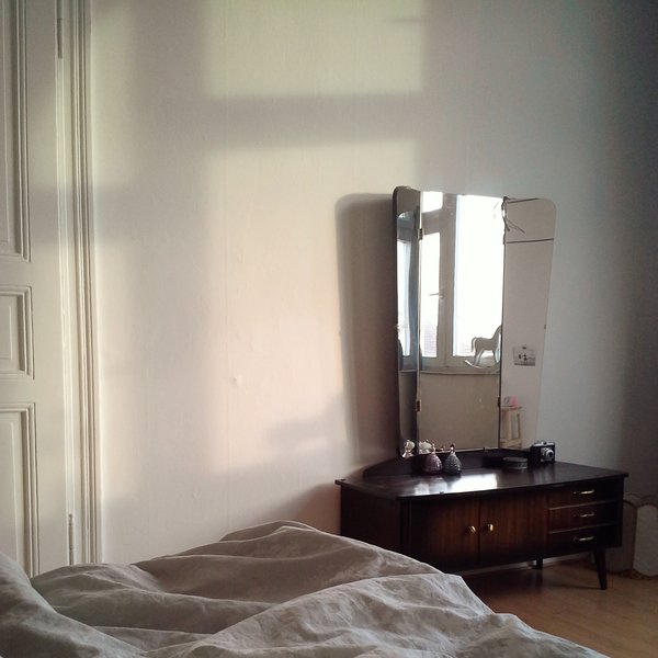Auch in Smetis und Matilmys Schlafzimmern geht es ruhig zu; mit natürlichen Materialien und tollen Vintagespiegeln!