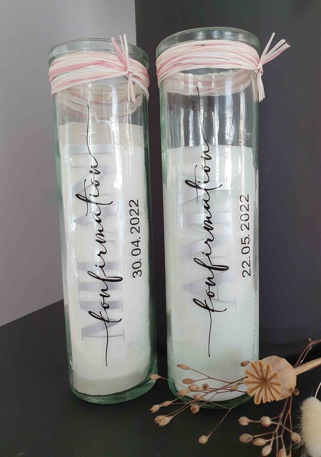 Glaskerze, Geschenk, Kommunion, Muttertag, Deko, Kerze