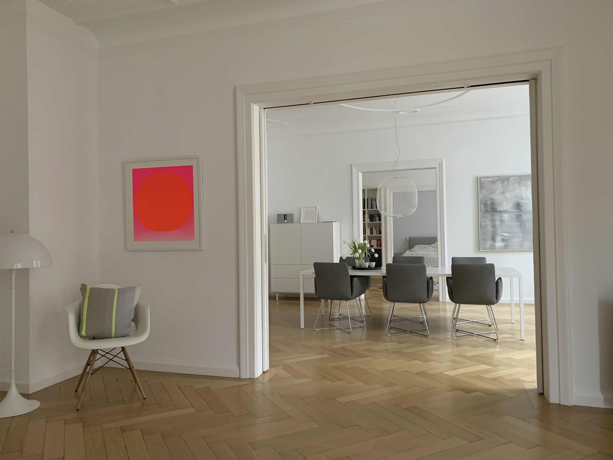 Altbau, HAY, Louis Poulsen, Panthella, PIURE, COR, Foscarini, Stuck, Weitblicke, Flügeltüren, Esszimmer, Wohnzimmer