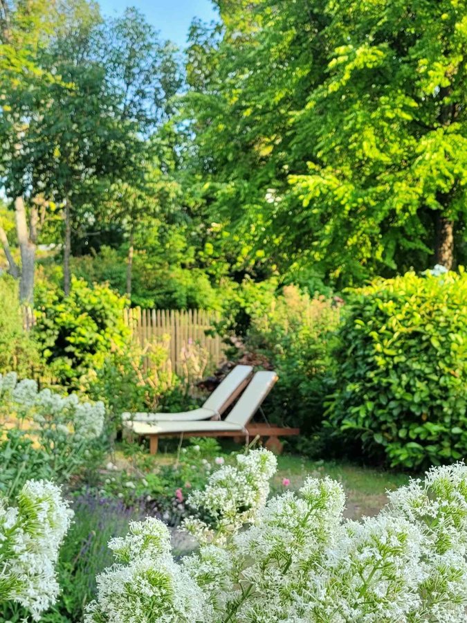 Abendlicht, Gartenblick, Staketenzaun, Naturgarten