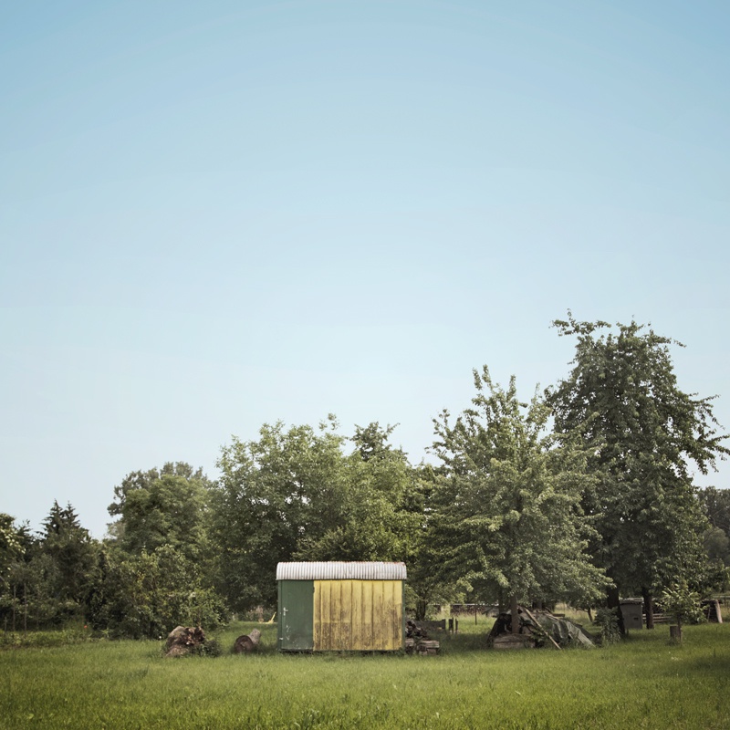 Bauwagen, Wilder Garten, Bäume, Wiese