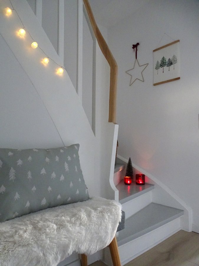Flur, Kissen, Textilwerk, Weihnachtsdeko, Holztreppe