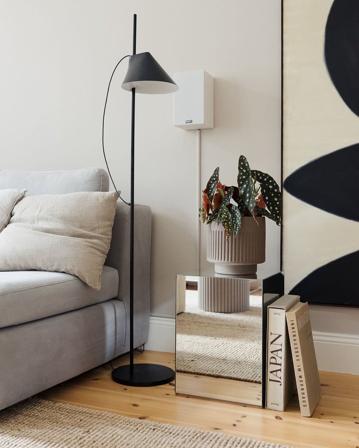 Wohnzimmer, Beistelltisch, DIY, Stehleuchte, Spiegeltisch, Beige