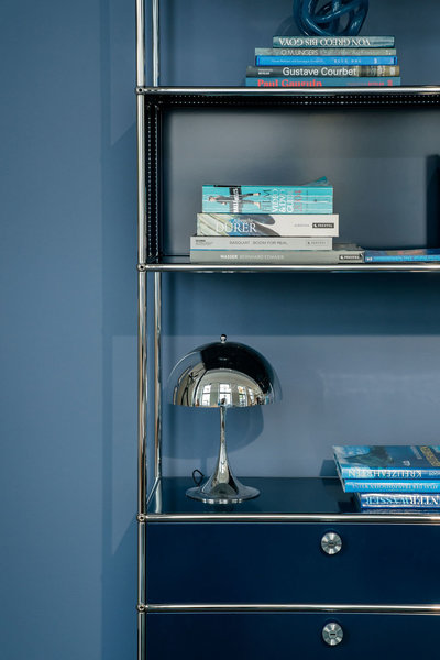 Die Panthella MINI in Hochglanzverchromt im Büro des SoLebIch-Apartments.