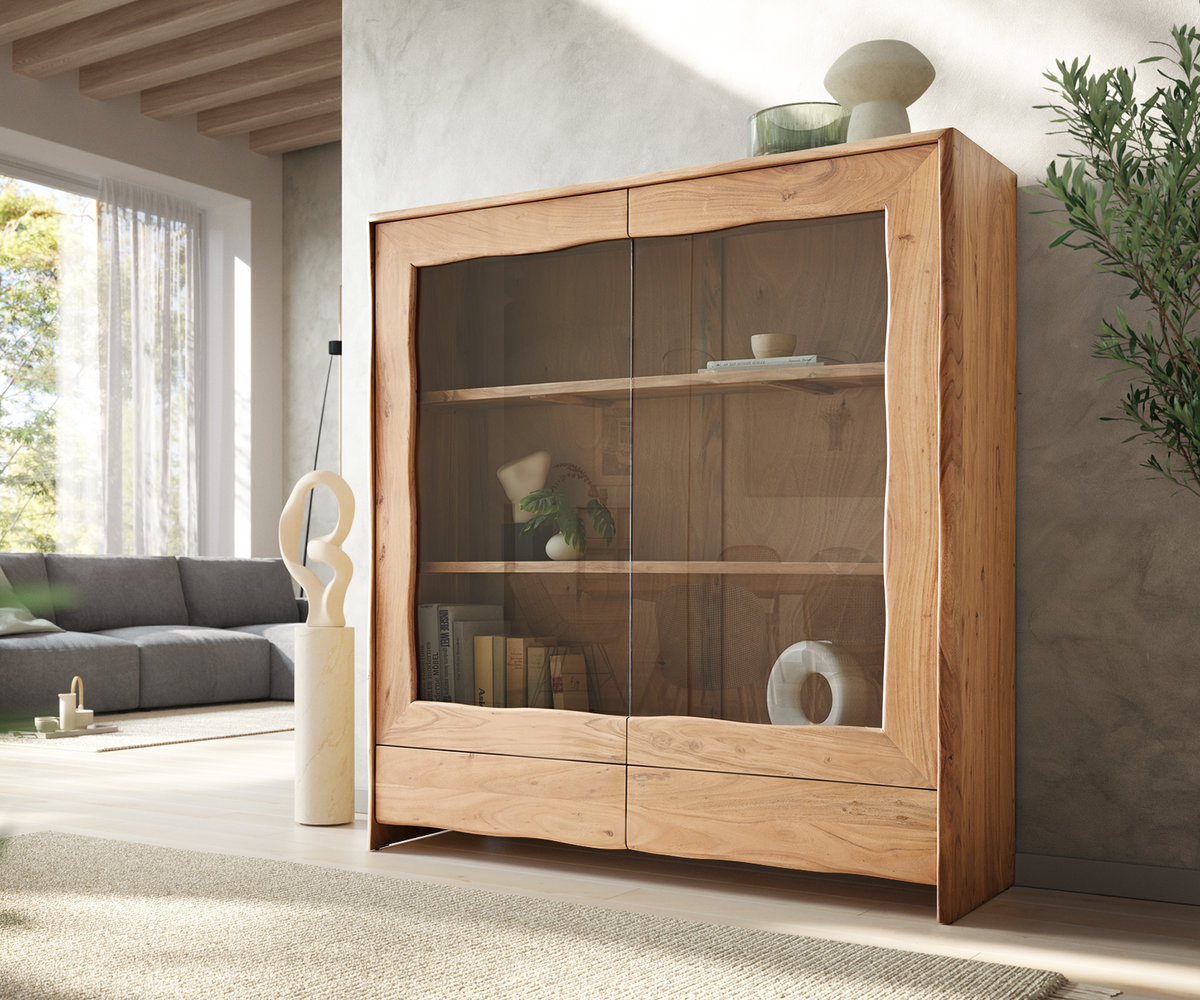 Zeitlos elegant - Die Live-Edge VitrineDer natürliche Charme des Akazienholzes und das schlichte Design erlauben eine vielfältige Kombination mit zahlreichen Einrichtungsstilen.