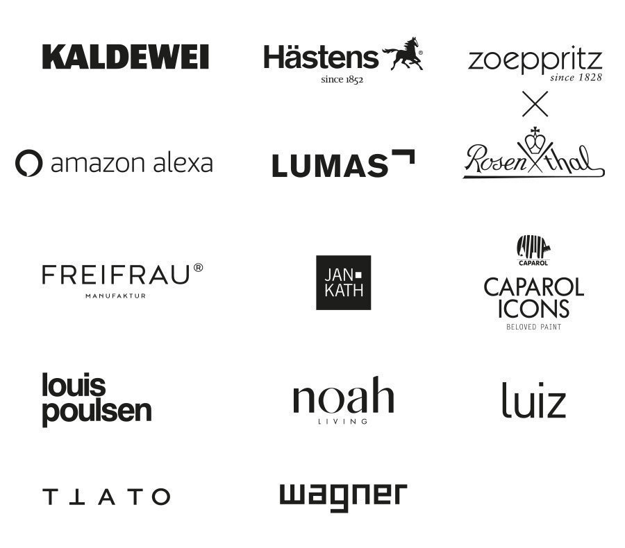 Kaldewei, Hästens, Rosenthal x zoeppritz, Amazon Alexa, LUMAS, Freifrau, Caparol Icons, Jan Kath, Louis Poulsen, Luiz, Noah Living, TTATO, Wagner