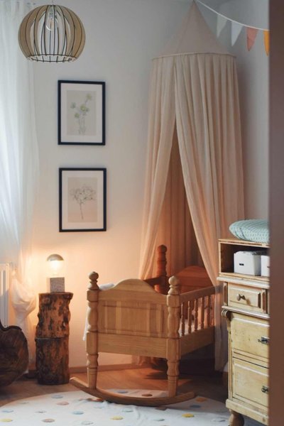Anika (31) arbeitet als Innenarchitektin bei einem Einrichter in Saarbrücken, befindet sich nun aber in der Babypause und bereitet mit großer Freude das Nest für ihre Tochter vor. Dabei kam im Babyzimmer auch wieder ein altes Familienerbstück zum Einsatz: die alte Holzwiege. Die Weichholzkommode rechts daneben ist ein Kleinanzeigenfund und wurde zum Wickeltisch umgebaut.