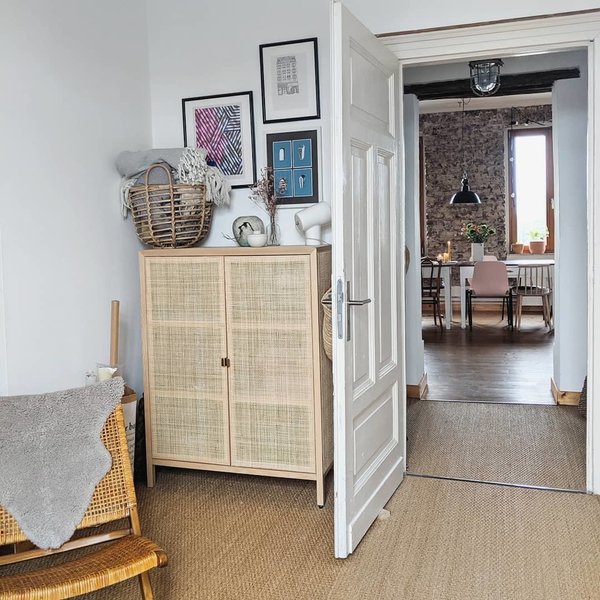 „Ich liebe es, mit nackten Füßen über den Dielenboden zu laufen“, schwärmt Anne (32) aka @ammenmaerchen über ihre Wohnung mit offenem Gemäuer, freigelegten Balken und reichlich Charme. Die Art-Direktorin, Foodstylistin und Illustratorin lebt hier mit ihrem Mann Jens mitten in Düsseldorf auf 85 qm.