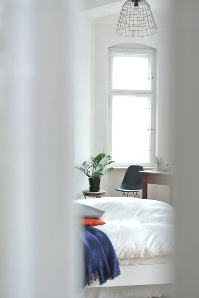 Holzdielen, hohe Decken, lichtdurchflutete Räume, Stuck und Flügeltüren – in welcher Stadt wir heute wohl sind? Natürlich im pulsierenden Berlin. In einer der dortigen Zwei-Zimmer-Altbauwohnungen hat sich Anna (29) aka @alST zusammen mit ihrem Mann ein ruhiges Refugium mit viel Weiß und blauen Akzenten geschaffen.