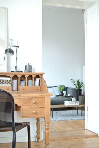 Mein Vater hat diverse Sammelleidenschaften – unter anderem Bauernmöbel. Daher hab ich schon als Kleinkind ein Zimmer mit nur alten Möbeln gehabt. An meinem Schreibtisch habe ich schon zu Grundschulzeiten Hausaufgaben gemacht und jetzt ist er immer noch mein Lieblingsarbeitsplatz.