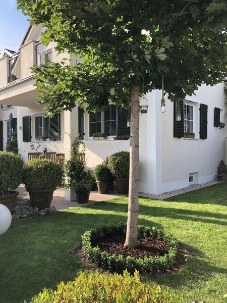Die meisten habe ich von dem Gartencenter Urgibl in Eglharting. Meine Drypots sind zum Beispiel von der Firma Van der Leeden, in denen meine Zieräpfel gepflanzt sind und in die ich auch jetzt im Frühling meine Olivenbäume setzen werde. Es sind Kübel mit festem Korb herum. Mega praktisch und auch super für den Winter geeignet.