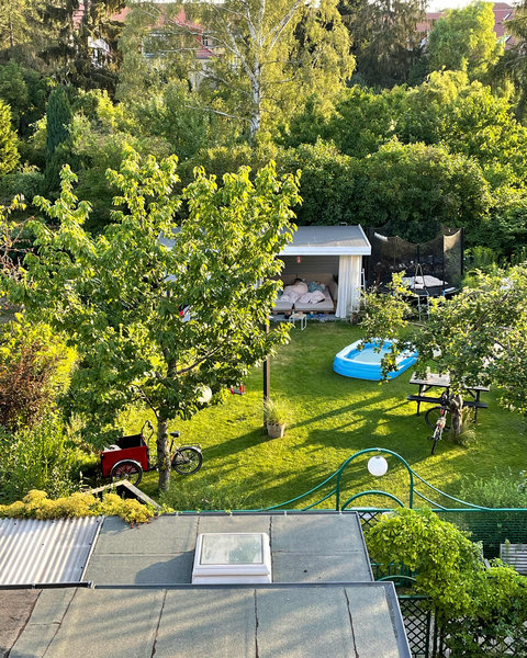 Kathas Garten misst 200 qm, das komplette Grundstück hat 340 qm. Ihr Gartenhaus dient im Sommer nicht nur als gemütlicher Rückzugsort, manchmal wird hier sogar übernachtet.