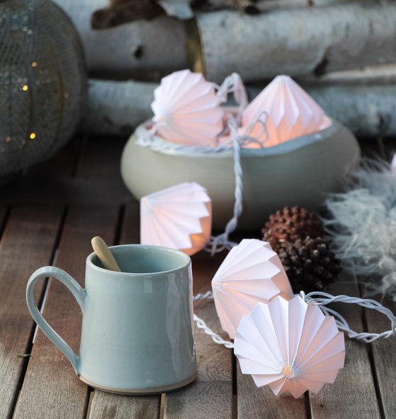 Lichterketten sorgen auf Knopfdruck für gemütliche Stimmung. Die kleinen Papierlampions von @art_gerechtwohnen geben ein zartes Leuchten ab. Die helle Lichterkette von [@Strandliebe] sorgt hingegen für die richtige Hintergrundbeleuchtung.