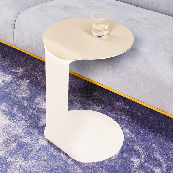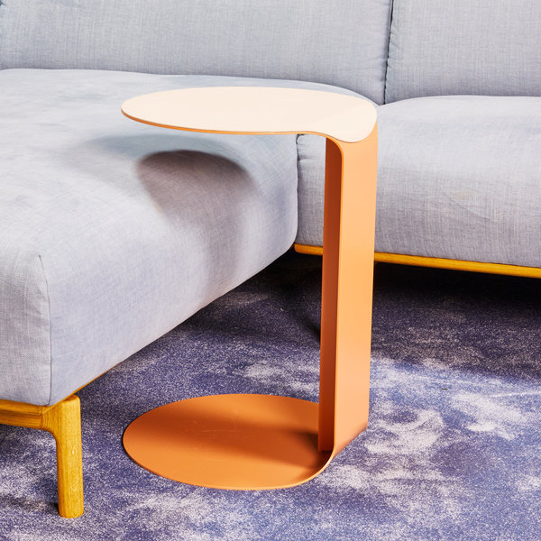 Das Besondere des Beistell- und Sofatischs Cheers besteht in seinem Kontrast: auf der einen Seite geradlinig und clean, auf der anderen Seite organisch weich. Genutzt werden kann er als Ablage oder fürs „gemütliche Homeoffice“ neben dem Sofa, aber auch freistehend mitten im Raum. Der aus pulverisiertem Stahlblech gefertigte Cheers hat eine Auflage aus Linoleum. Somit kann nichts verrutschen und verkratzen.