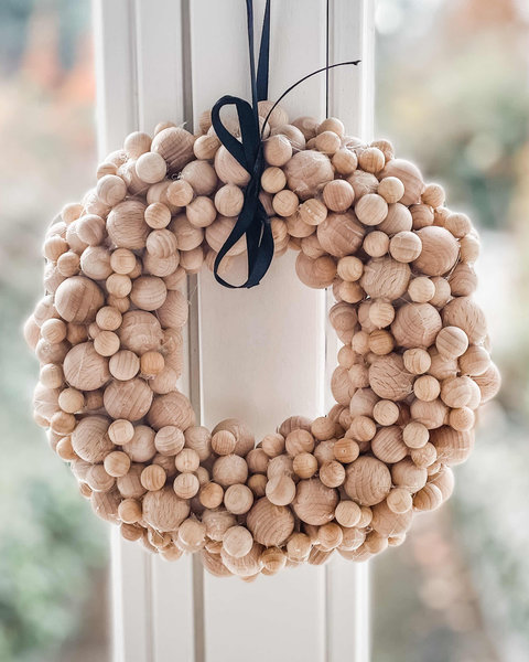 Warmes Holz und frisches Grün – die Kombi liebt @Süssken auch in der Weihnachtszeit: Ihren selbst gebundenen Kranz hat sie mit hölzerner Adventsdeko kombiniert. @Vaniliebt s hübscher Holzkugelkranz versüßt ihr täglich das Warten aufs Weihnachtsfest. Hier erfahrt ihr, wie man einen solchen Kugelkranz selbst herstellen kann.