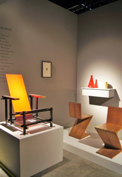 Die Galerie von Patrick Parrish aus New York hat sich auf Amerikanische Vintage Möbel von 1940 bis 1965 spezialisiert. Die Galerie Vivid hatte einen original Gerrit Rietveld dabei.