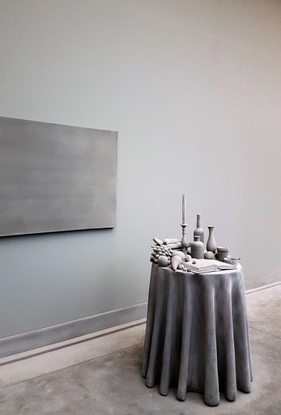 Eine der Installationen ,über die am meisten berichtet wurde, und auch Mitglied mywes Favorit auf der Art Basel war: Hans Op de Beeck, "The Collector's House", das Haus des Sammlers. Ein monumentales, wirklichkeitsgetreu gestaltetes Gesamtkunstwerk: ein ganzer Salon einer neoklassizistischen Villa eines möglichen Sammlers wurde nachgebaut, inkl. Seerosenbecken, Flügel, Bibliothek und Möbeln unter einer Asche- oder Staubschicht konserviert, die an Pompeji erinnern soll. Der belgische Künstler erschafft mit Vorliebe traumartige Raumszenarien, die stets vertraut und etwas fremd zugleich wirken. Es geht immer um die universelle Frage nach Bedeutung und Endlichkeit. (Marianne Boesky Gallery, Galleria Continua and Galerie Krinzinger)