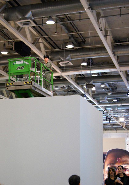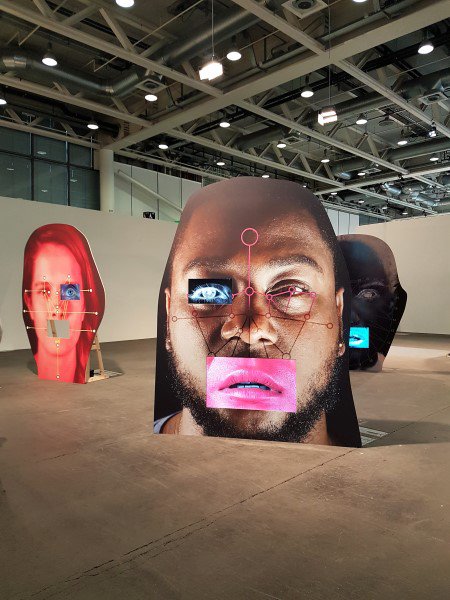Im ersten Moment etwas bedrochlich, zugleich aber sehr faszinierend: die Installation "N^u" von Tony Oursler (Galerie Hans Mayer). Die Augen oder der Mund sind bewegte Bilder und so verändert sich der Gesichtsausdruck ständig. Die Performance "Canon" (Galerie Gisela Capitain) verbreitete Vogelgezwitscher über das Long Range Acoustic Device (LRAD), das zur Auflösung von Demonstartionen benutzt wird und bei maximaler Lautstärke zur Hörschäden führen kann und auch auf Grundstücken verwendet wird, um sie Vogelfrei zu halten. Der junge Künstler Samson Young aus Hong Kong war als Polizist verkleidet - etwas surreal aber gut. Er hat gerade auch als erster den BMW Art Journey Preis gewonnen.