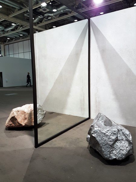 Definitiv einer meiner Favoriten: Die irritierende Installation "Out of Ousia" von Alicja Kwade, eine optische Täuschung, die uns die Limits der beobacheten Realität, bzw. ihrer Subjektivität, aufzeigen soll. Beim Umrunden der identischen Steine verschmilzen diese, bzw. der eine Stein die Farbe des anderen an. Wolfgang Tillmanns hatte einen ganzen Stand als Ausstellungsfläche auf der Unlimited, was bei einigen Besuchern zu Verwunderung führte, sollte diese Sektion vor allem großformatigen Projekten zur Verfügung stehen. Nichtsdestotrotz erfreue ich mich an den Fotos, die ganz lässig an die Wand geheftet wurden.
