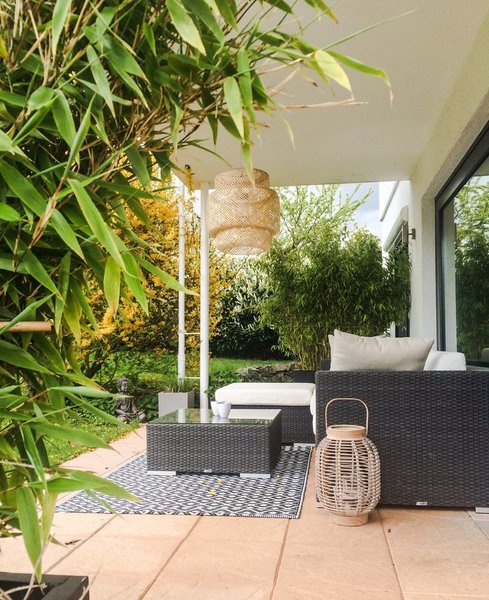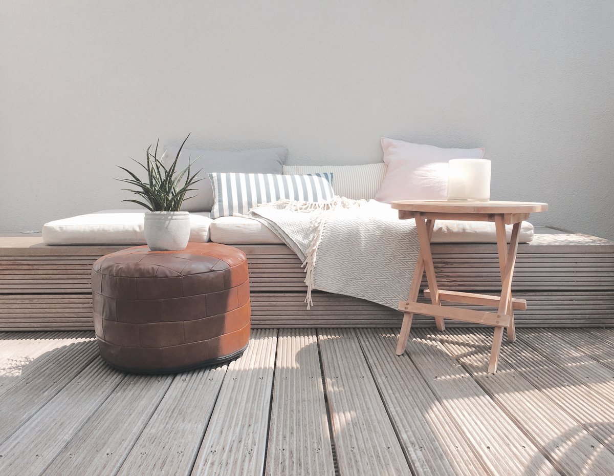 schimmel dekoriert ihre Terrasse sommerlich leicht mit schönem Lederpouf