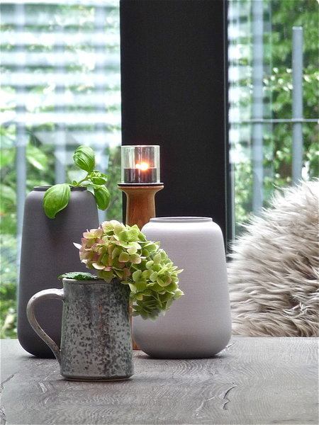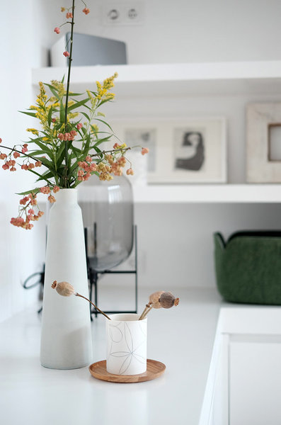 Tolle Blumendekoidee von Labelfrei auf schwarzer Wand und di Lieblingskeramik von Natalie D.