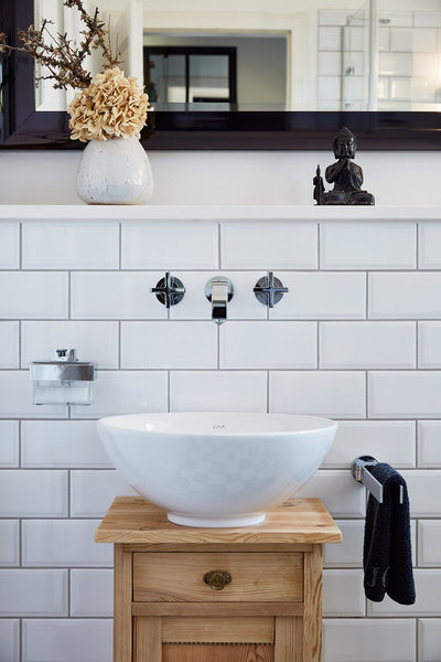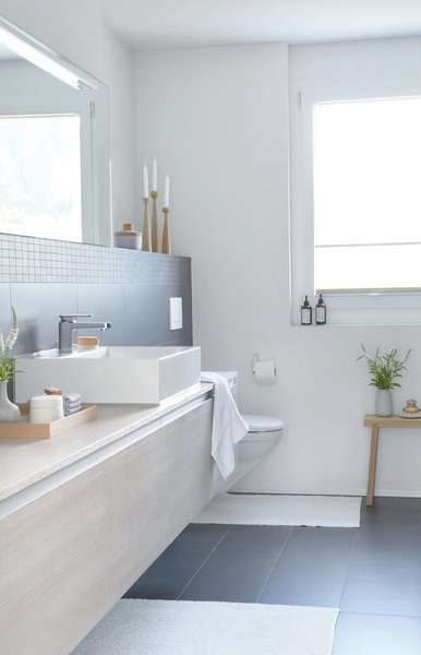 Neben den tollen Schlafzimmern sorgten auch wunderschöne Bäder für mehr Entschleunigung zu Hause. Mit einem Materialmix aus verschiedenen Hölzern, weichen Textilien und dezenter Deko, zum Beispiel mit Badaccessoires aus Keramik oder Bast wird aus der Nasszelle ein einladender Wohlfühlraum. Seht selbst: