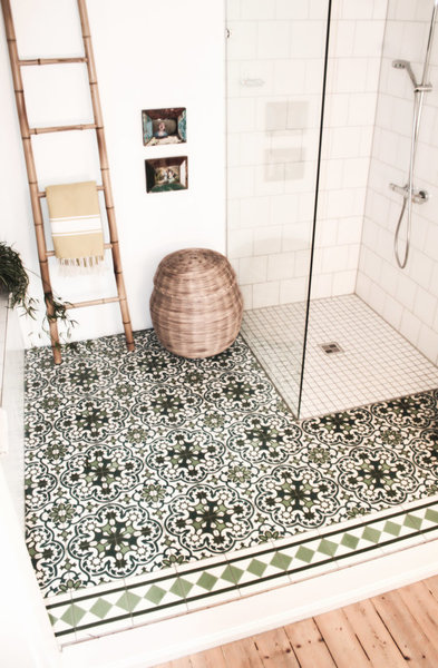 Schon wenige exotische Muster zaubern ein wenig Urlaubsgefühl ins eigene Zuhause: Bei Himmelsstück ist es die handbemalte Vase, bei nathalie seel die tollen Badfliesen