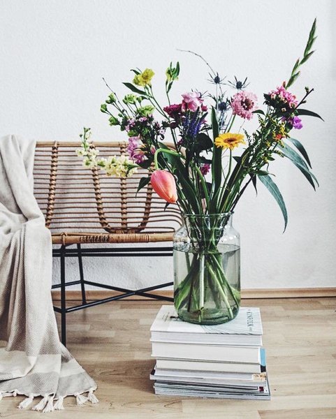 Endlich wieder bunte Blumen: bei claudetta in der Vase, bei pantella als Kissen auf dem Sofa