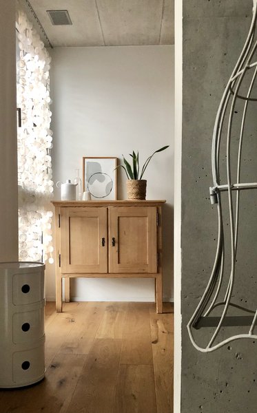 @TaFrie Living hat das Sideboard im Schlafzimmer mit Körben darunter zu einer Kommode umfunktioniert. Nachdem sie das Sideboard (damals in Dunkelbraun-Hochglanz) von ihren Nachbarn geschenkt bekommen hatte, sollte es ursprünglich als Waschtisch im Badezimmer dienen. Tanja hat es in mühevoller Arbeit abgebeizt, aber nicht abgeschliffen: „So ist es super und viel schöner als perfekt“, sagt sie. Die Kommode von @Januschka ist wahrlich ein Lebensbegleiter: Jana selbst wurde bereits darauf gewickelt, später kamen dort Kleidung und Schulsachen unter. Sie war auch die erste gemeinsame Sockenschublade von ihr und ihrem Mann und in der jetzigen Wohnung beherbergt sie im Flur Alltagsgegenstände.