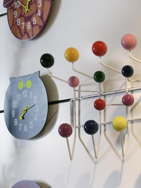 Ebenfalls ein Designklassiker von Vitra ist die Hang it all Garderobe – auch von Ray Eames und Charles Eames entworfen. Als Haken werden unterschiedlich große Holzkugeln verwendet, die in unterschiedlicher Höhe an einem Metallgestell angebracht sind. Hier finden Jacken, Taschen, Rucksäcke, aber auch Hüte ihren neuen Platz! Die Garderobe ist für 275 € in unterschiedlichen Farben verfügbar – Grün, Rot, Weiß, Schwarz sowie Bunt.