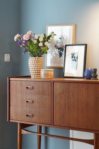 Neue Dinge kauft die 47-jährige Bianca aka @mees.und.mees nur wenige. Der Schubladenschrank im Esszimmer ist zum Beispiel Teil eines alten Knopfschranks aus ihrem Stoffladen. Sehr ungewöhnlich: In ihrer Wohnung steht schon seit 20 Jahren ein Flipper, der schon damals gebraucht war. Zusammen mit ihrem Sohn wohnt sie in einer 90-Quadratmeter-Wohnung in Hannover.