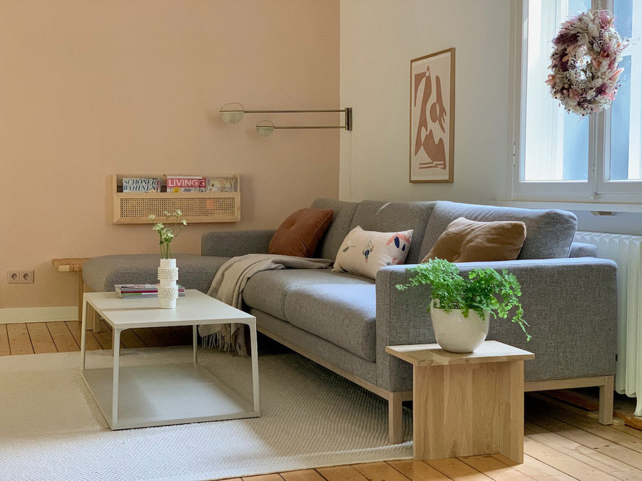 Als Pflanzenhocker verwendet, fügt sich der selbstgebaute Beistelltisch perfekt in Jessis gemütliches Wohnzimmer ein. Weitere DIY-Möbel aus Holz sollen folgen.