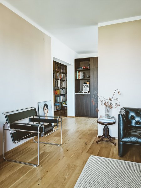 Elisabeth (38) in ihrer neuen Kaffeeecke. Die Wohnung befindet sich in einem Hochhaus mitten in Graz. Hier lebt sie – umgeben von vielen Designklassikern und Mid-Century-Modern-Möbeln – gemeinsam mit ihrem Verlobten Lukas.