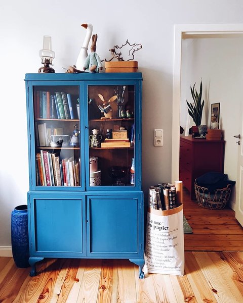 Für den richtigen Farbakzent braucht es nur ein Möbelstück, wie die blaue Vitrine bei @feinglanz oder das königsblaue Sofa bei @berlinhomelove . Beide stehen für sich, sind das farbige Highlight des Zimmers und kommen insbesondere mit Holz und Weiß besonders gut zur Geltung. Eine farblich passende Vase sowie das blaue Bild von Matisse greifen die Farbe nochmals auf.