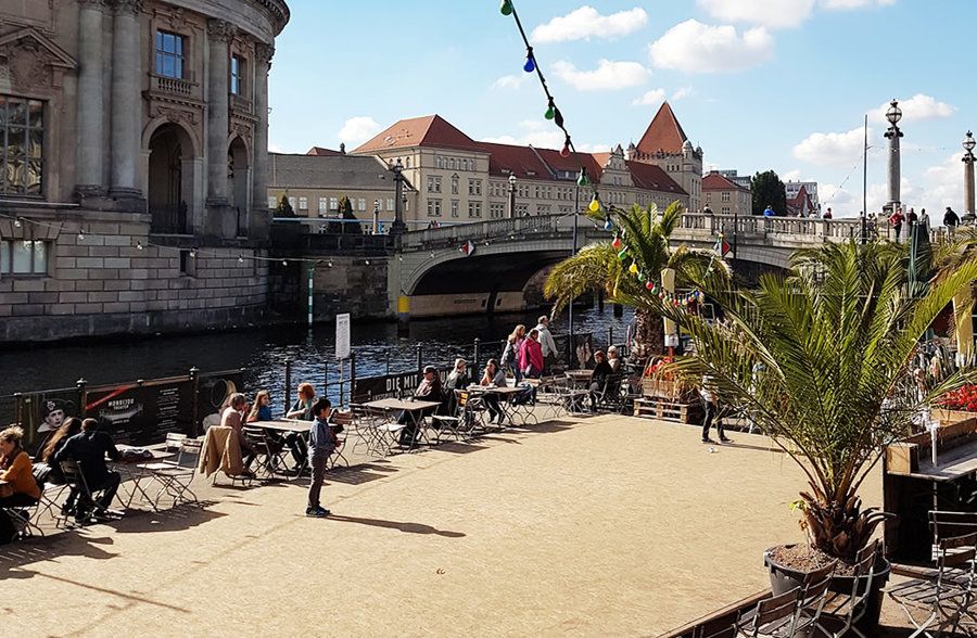 Monbijoupark gegenüber vom Bode-Museum, mit Spielplatz und Pizza aus der Märchenhütte.