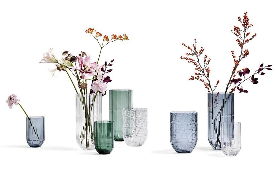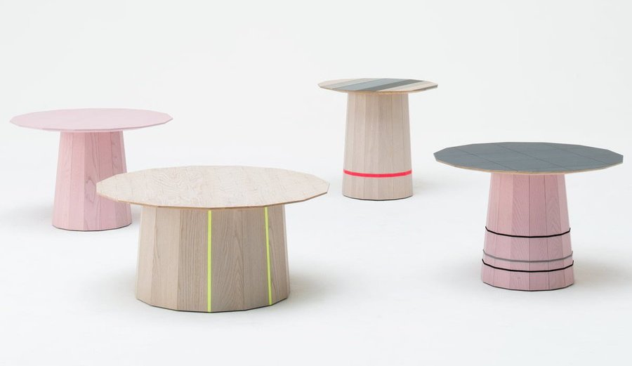Die kleinen Sofabeine der LYSKRAFT-Kollektion erinnern uns an den Entwurf der Designer für diese Holztische des Labels Karimoku New Standard und die Colour-Vasen für HAY.