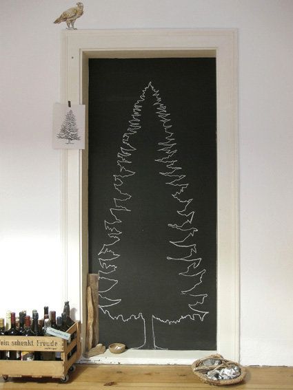 Auch sehr hübsch ist diese gemalte Variante. Mit ein wenig Tafelfarbe und weißer Kreide könnt ihr euch wie @Die Raumfee einfach einen Baum an die Wand oder Tür zeichnen.