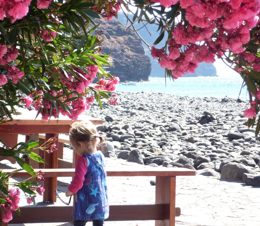 Die Anreise nach La Gomera, damals mit zwei Kleinkindern: zuerst mit dem Flugzeug nach Teneriffa Süd, von dort mit dem Bus an den Hafen, dann mit der Fähre nach La Gomera und von dort – es war inzwischen dunkel – mit einem kleinen Boot auf die Finca. Ein kleines Abenteuer! Aber unsere Kinder lieben es und es vergeht im Alltag keine Woche, in der wir nicht von La Gomera träumen.