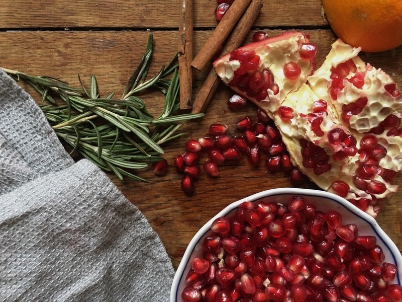 Ich fülle selbst gemachte Kaltgetränke am liebsten in Glasflaschen mit Bügelverschluss ab (gibt’s zum Beispiel bei Ikea). Für einen Liter Winterlimonade erst drei Saftorangen auspressen und durch ein Sieb in die Flasche füllen. Drei Esslöffel Sirup und eine Hand voll Granatapfelkerne dazu geben. Mit Sprudel auffüllen und kalt stellen. Muss die Limo nicht lang gelagert werden, kann sie noch mit einer Zimtstange und einem Stängel Rosmarin bestückt werden. Noch ein schönes Detail: Etikett per Hand beschriften und mit Bäckergarn um den Flaschenhals binden.