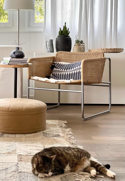 Ein bunter Wildblumenstrauß mit allem, was @Smeti am Wegesrand gefunden hat, schmückt den Esstisch – die ersten Cosmeen aus eigener Ernte inklusive. @amelies_sweet_home freut sich über den neuen Teppich von Søstrene Grene. Die fliederfarbene Tasche an der Tür sorgt für einen zusätzlichen Farbtupfer.