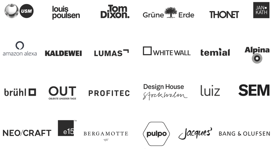 Danke an USM, Louis Poulsen, Tom Dixon, Grüne Erde, Thonet, Jan Kath, Amazon, Kaldewei, Lumas, WhiteWall, Vorwerk Temial, Alpina, brühl, Objekte unserer Tage, Profitec, Design House Stockholm, Luiz, SEM, NEO/CRAFT, e15, Bergamotte, pulpo, Veuve Clicquot, Bang & Olufsen und Jacques’ Wein-Depot!