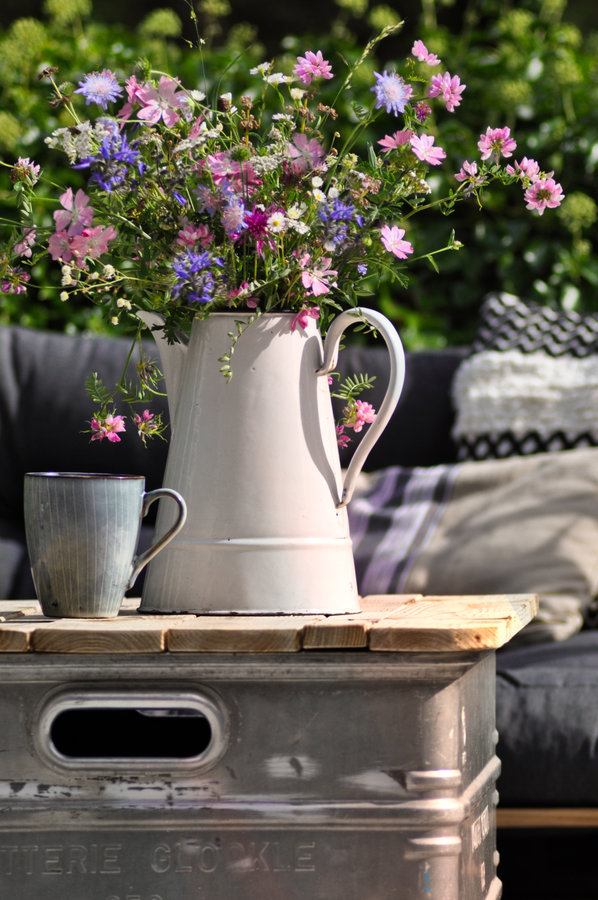 Sommer2019, alsnoch, Sommer, war, Sonne, Terrasse, Blumen, Outdoor, Paletten, Alubox, Diy, Emaille, Kissen