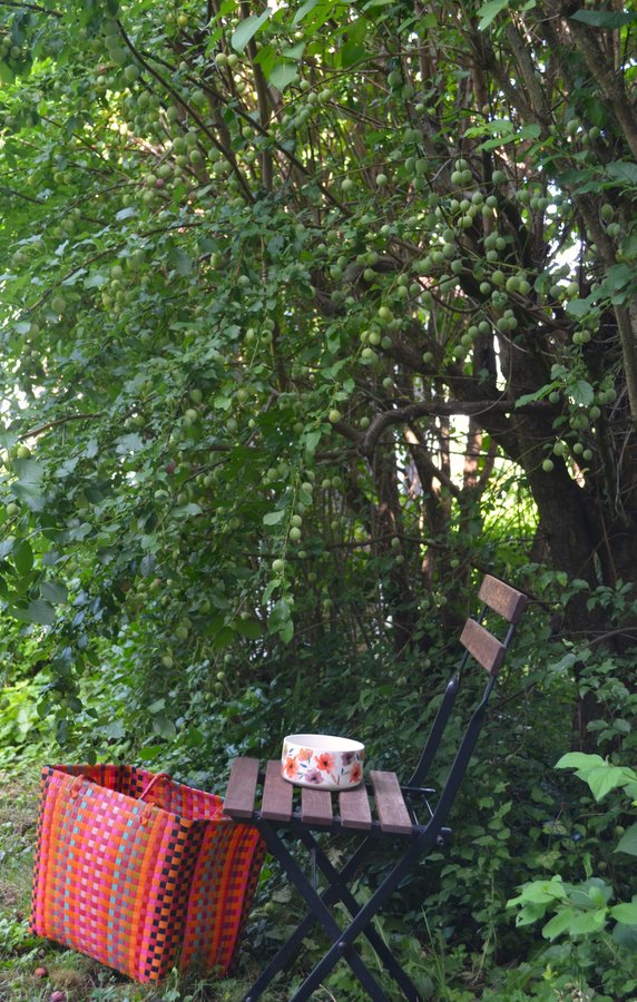 Obstbaum, Nutzgarten, Ernte in Sicht, Mein Dschungel, Gartenstuhl, Flechtkorb, JuliGarten