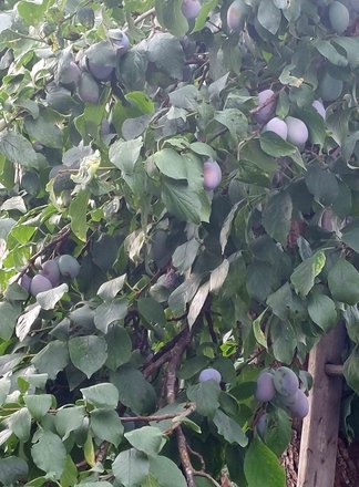 Eben bin ich durch unbekannte Gartengefilde um unser Mietshaus gestromert, da gibt es doch noch einiges zu entdecken, unter anderem weitere Apfelbäume und einen uralten Mirabellenbaum. Wenn meine Nachbarin mich nicht darauf aufmerksam gemacht hätte, würde ich immer noch glauben, dass ich diesen Gartenbereich, der mit einer Pforte abgetrennt ist, gar nicht betreten dürfte. Tja, so hat man mich halt erzogen: Man entert nicht einfach fremde Gärten hinter einem Zaun😉...