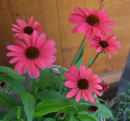 Echinacea, Lavendel, Körbe, Terrasse, Regenpause, Juliimpression