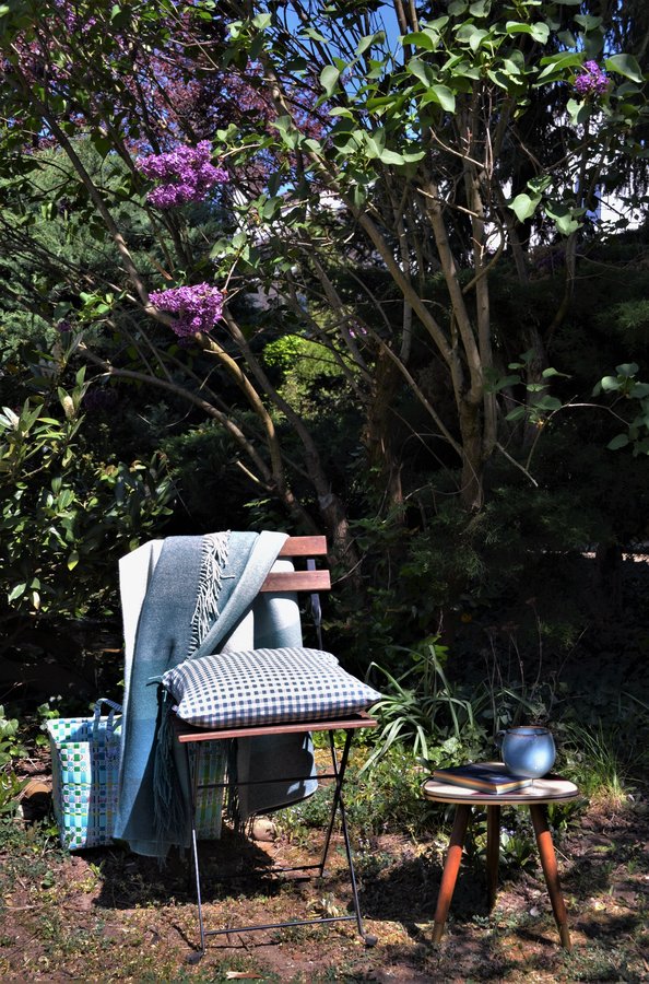 Flieder, Garten, Gartenimpressionen, Beistelltisch, Midcentury, Gartenstuhl
