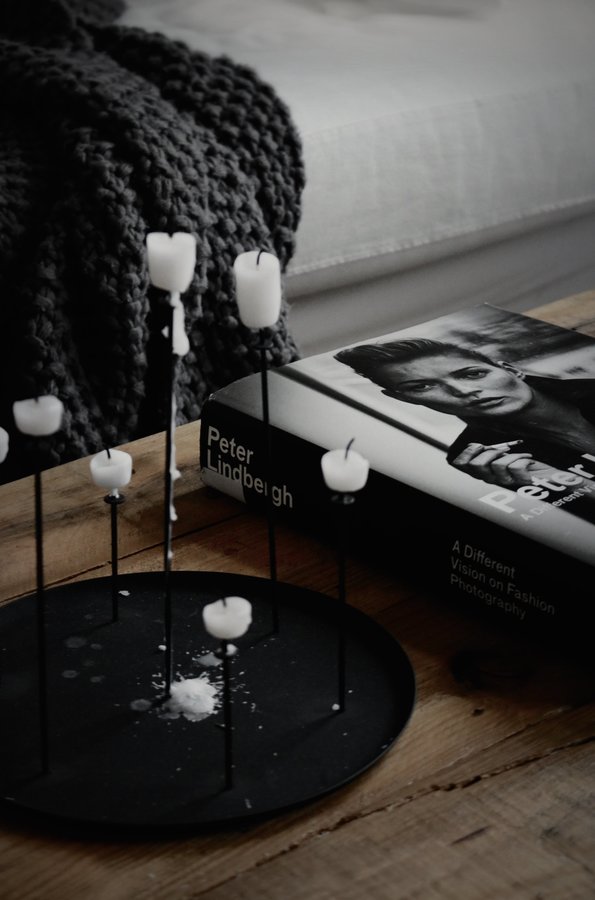 Peter Lindbergh, Fotobuch, Foto, Altbau, Schwarz weiß, Tisch, Decke, Kerzenständer, Winter, Wohnzimmer, Dielen